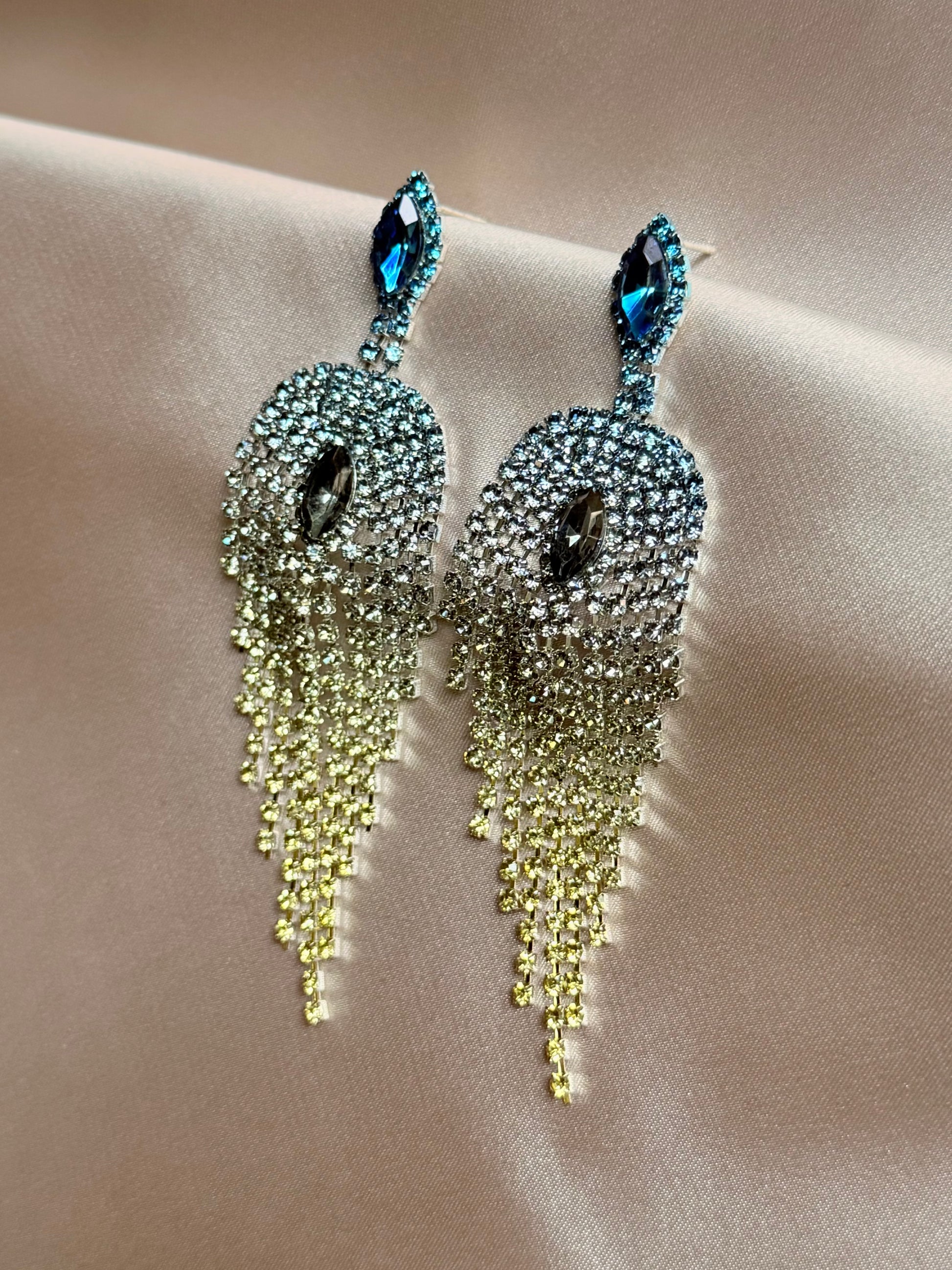 New Gradient Color Feather Full Drill Tassel Earrings Women High-End Feeling Water Diamond Earring Ear Jewelry Earrings